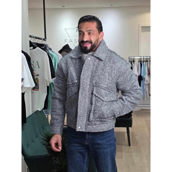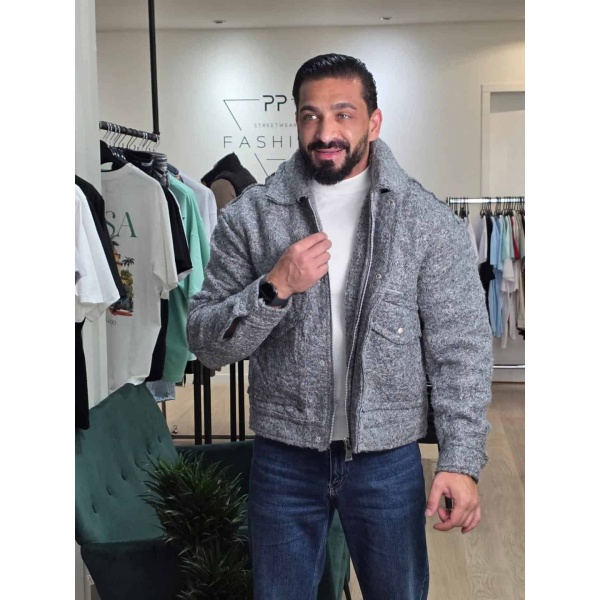 Deze stijlvolle grijze jas heeft een unieke bouclé-textuur die zorgt voor een luxe en warme uitstraling. De jas is voorzien van meerdere zakken met rits- en drukknoopsluitingen, wat zowel functioneel als modieus is. Perfect voor koelere dagen.