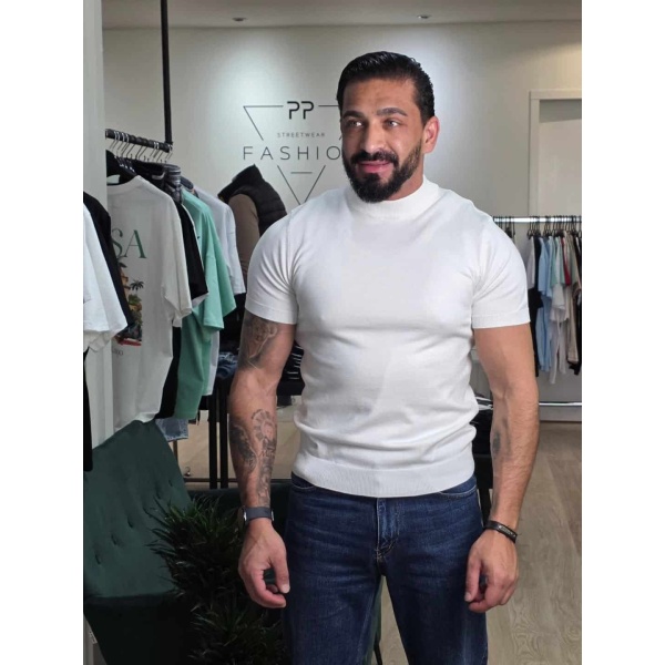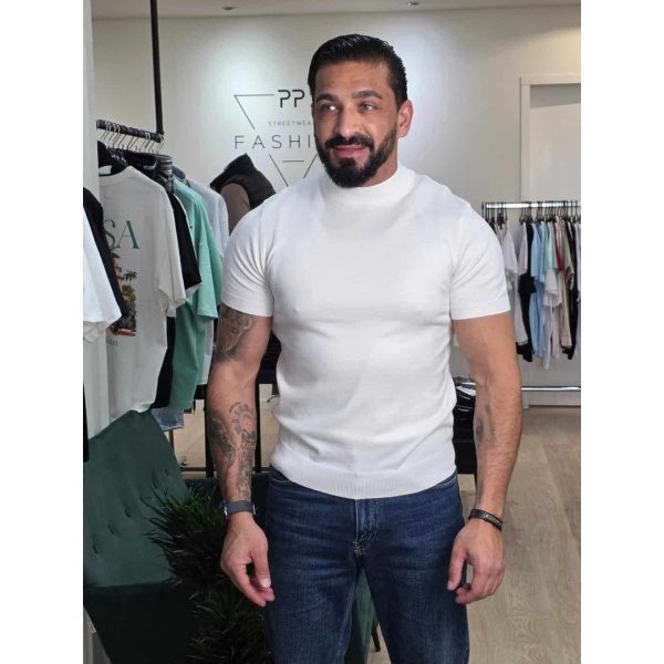 Coltrui Half Kraag Korte Mouwen Wit 855