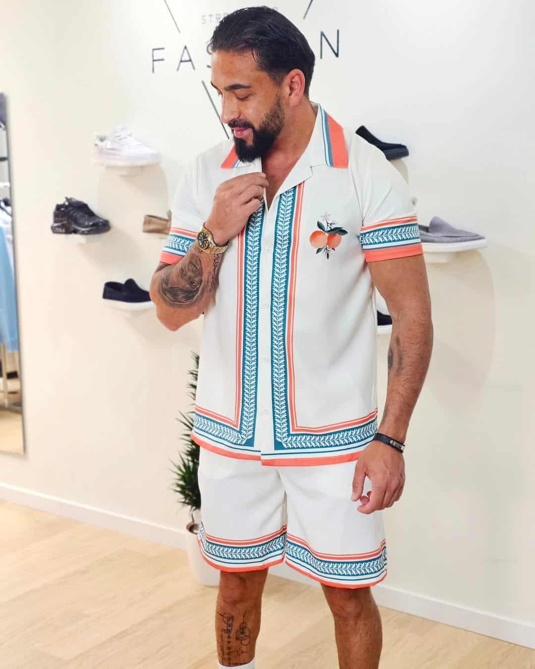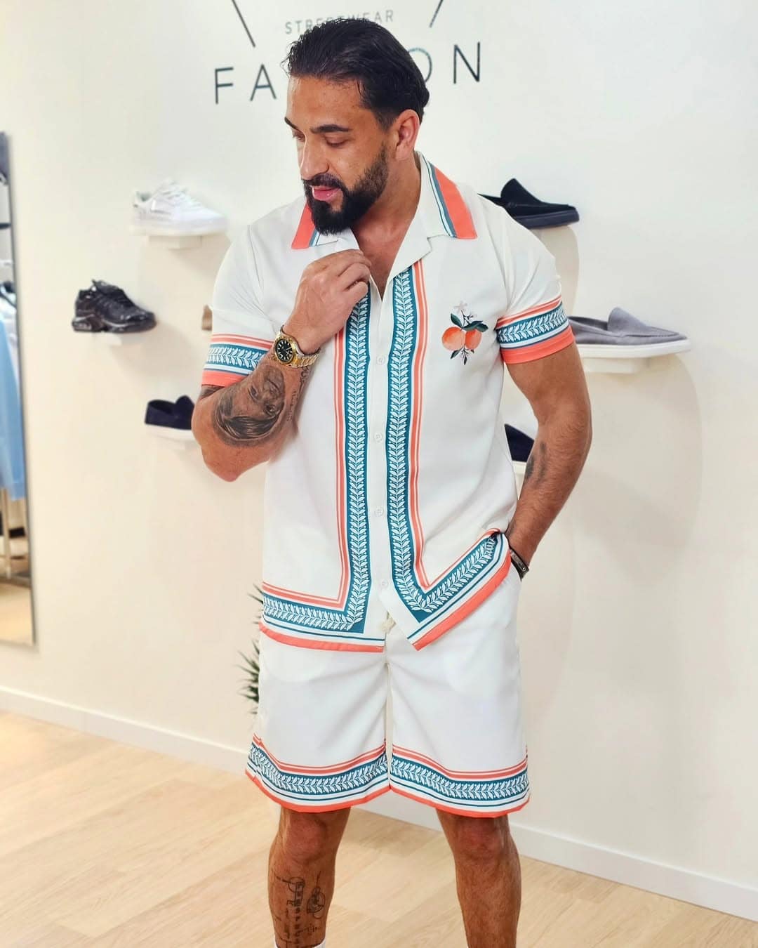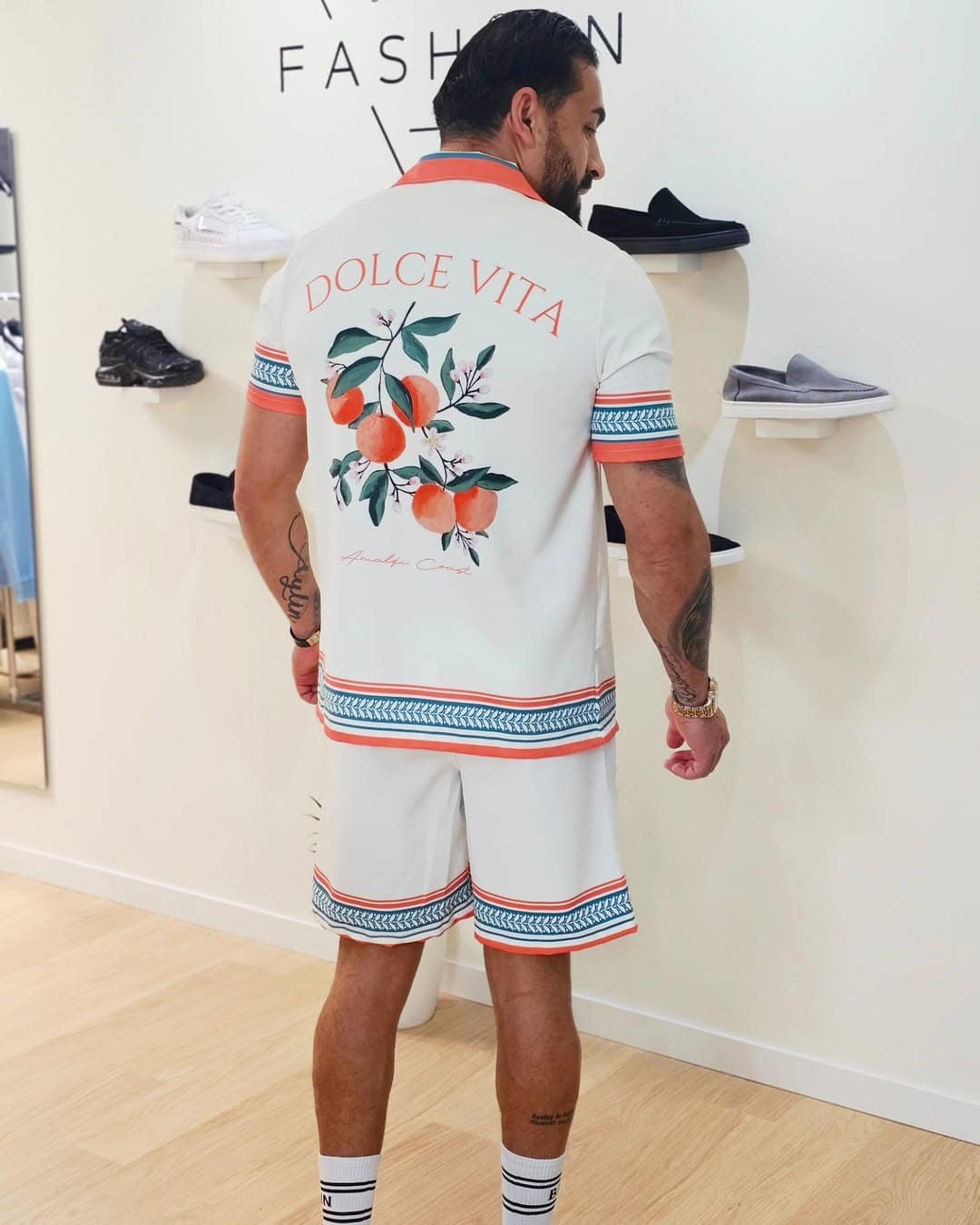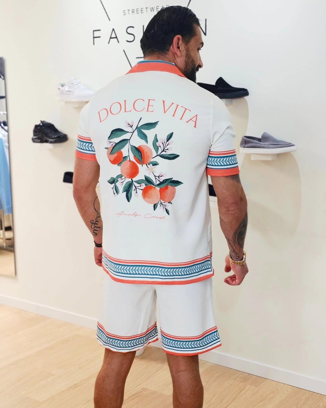 Breng de zon naar je garderobe met deze exclusieve Dolce Vita Summer Set! Geïnspireerd door de charme van de Amalfikust, straalt deze set luxe en zomergevoel uit. Gemaakt van hoogwaardig materiaal met een verfijnde afwerking en opvallende details zoals de sinaasappelprint op de rug en kleurrijke boorden in terracotta en turquoise.