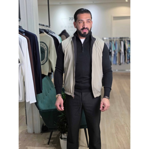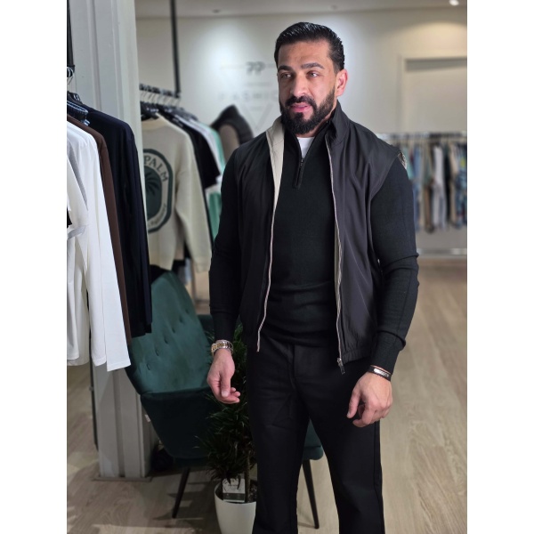 Deze bodywarmer is een stijlvol en veelzijdig item, perfect voor verschillende looks. Het model is dubbelzijdig, waardoor je twee stijlen in één krijgt. De ene kant is een Zwart tint, terwijl de binnenkant een Bruin kleur heeft.