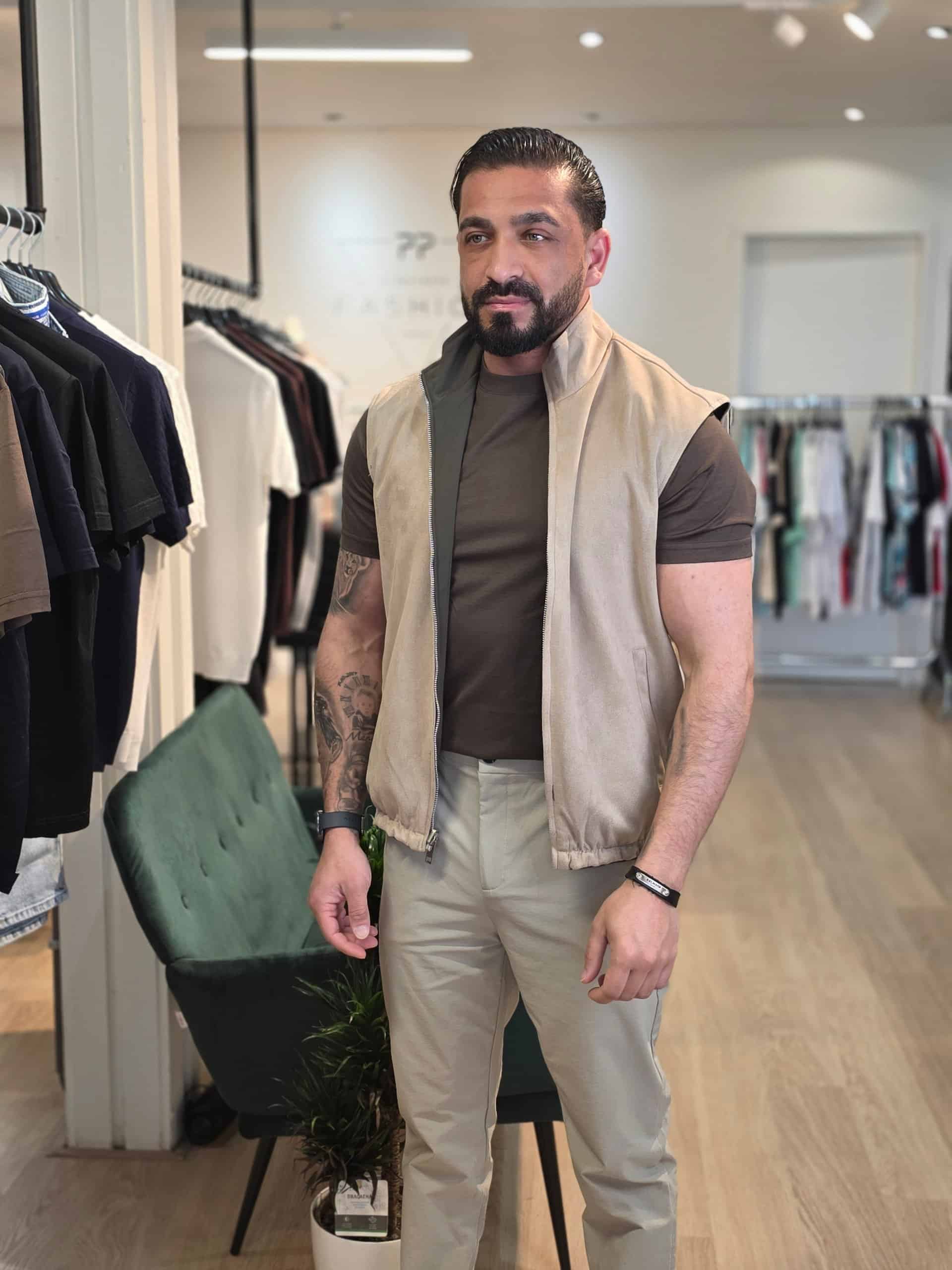 Dubbelzijdige Suède Bodywarmer Bruin Camel 06