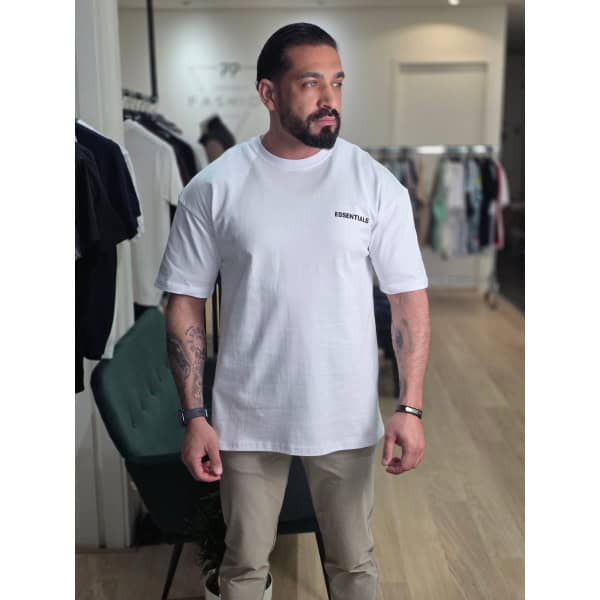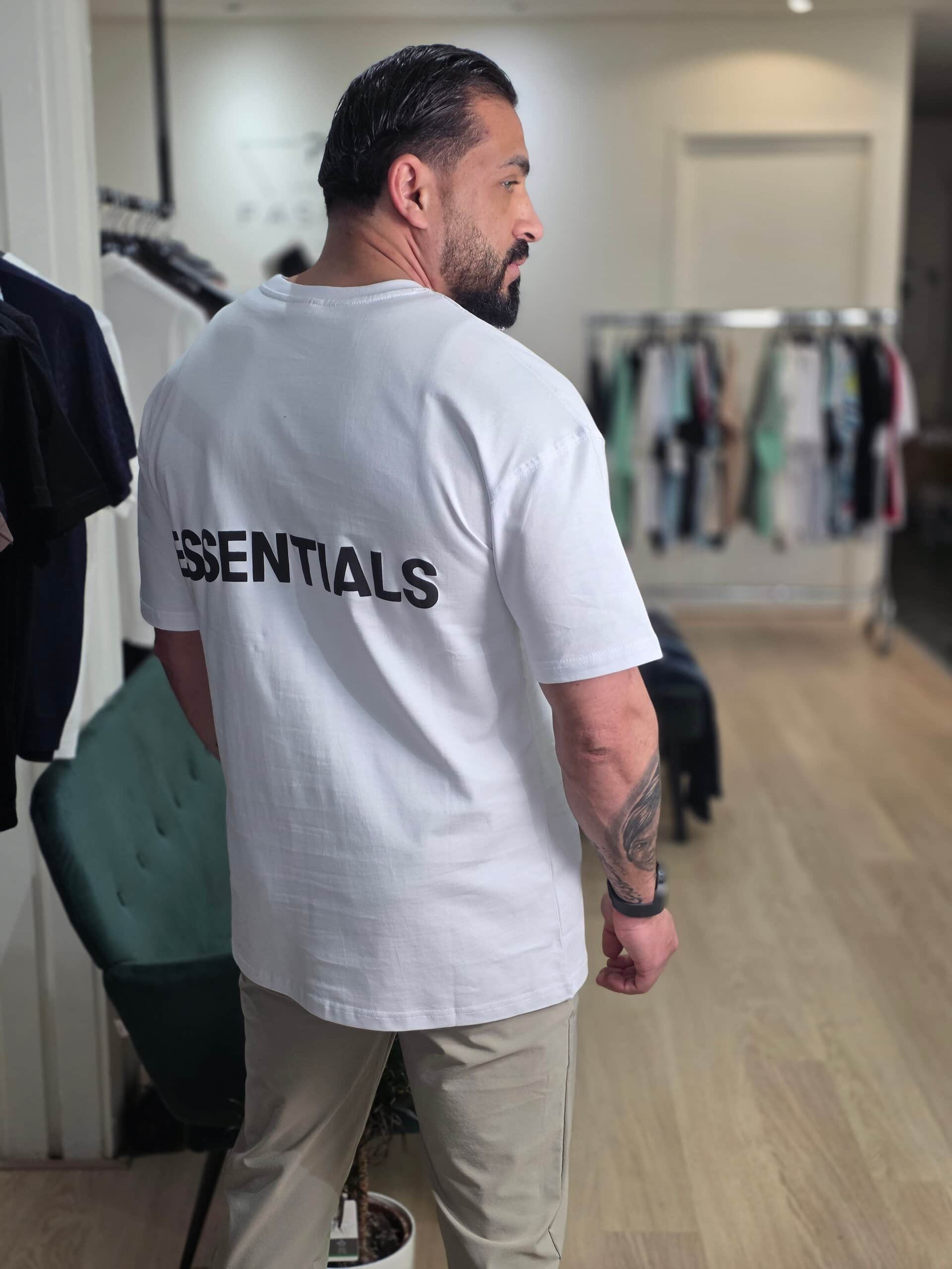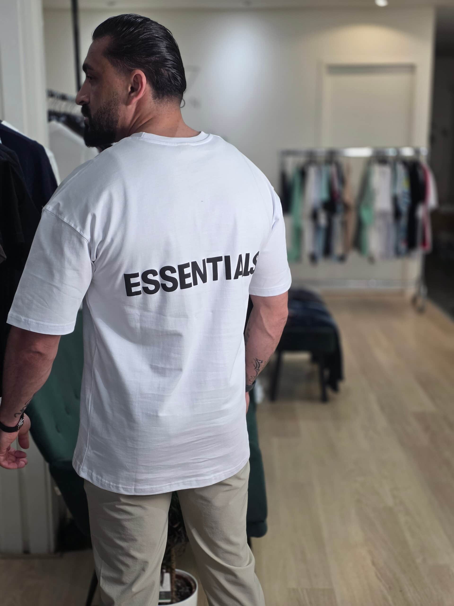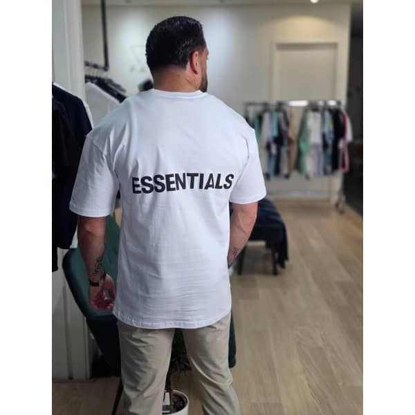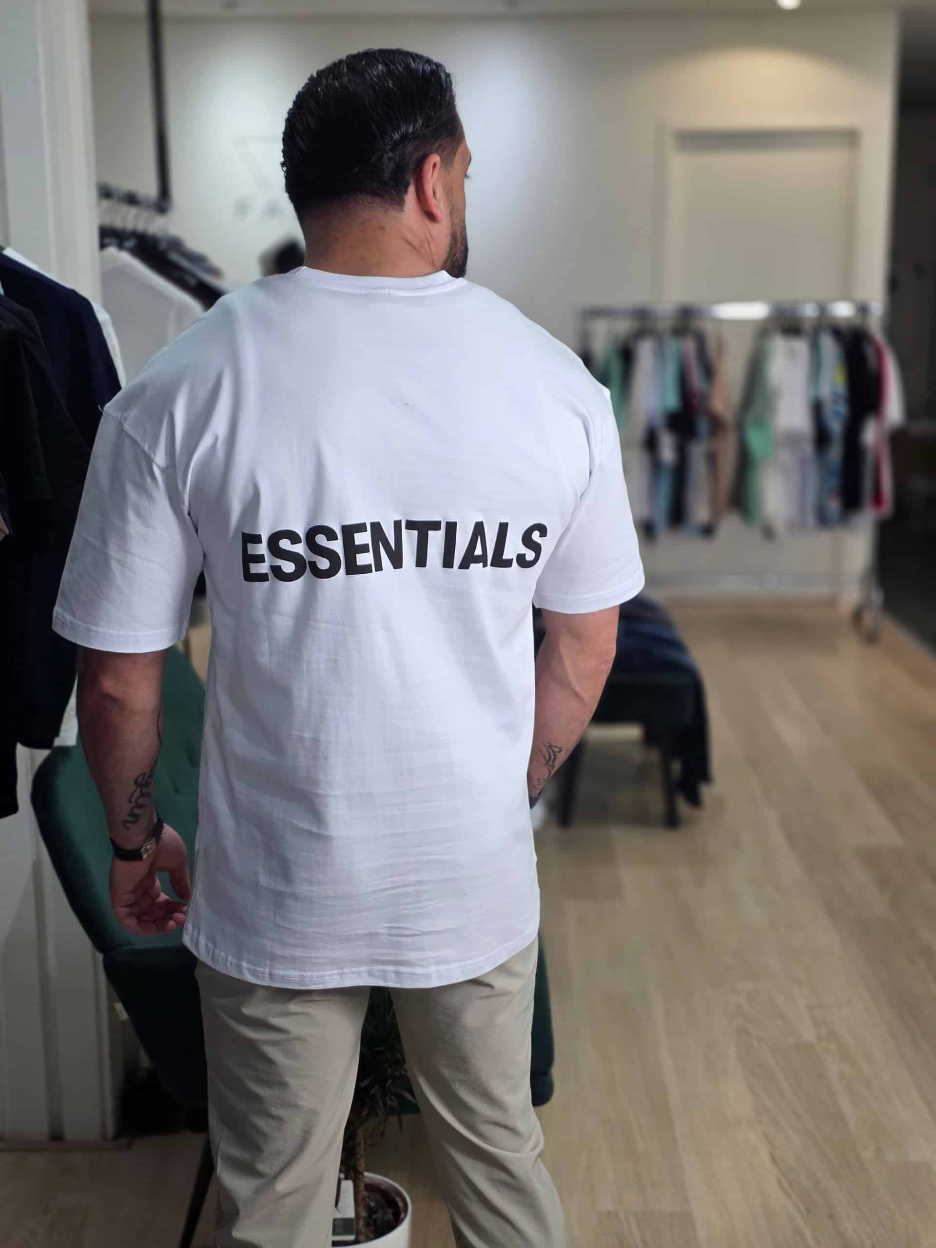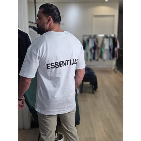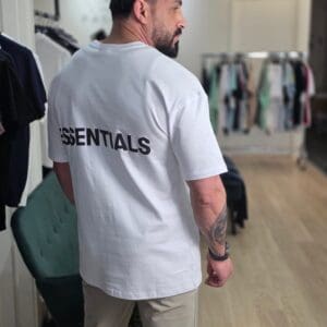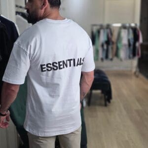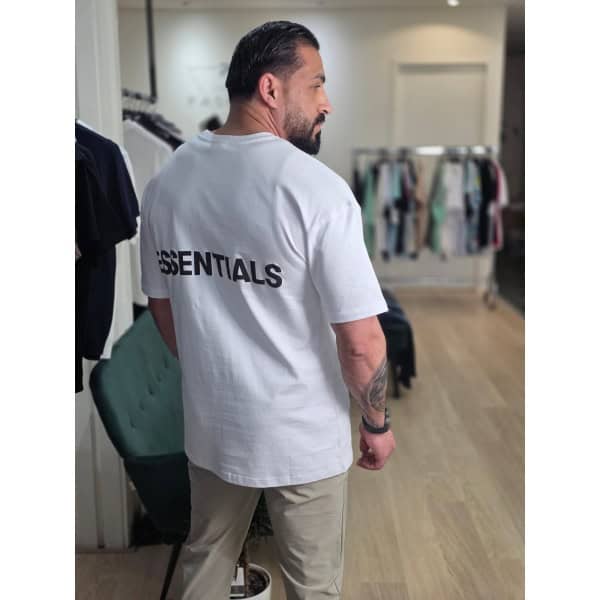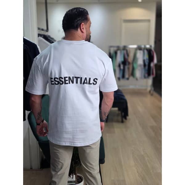 Deze Essentials Oversized T-shirt is een modern en trendy kledingstuk met een Oversized pasvorm en een opvallend grafisch design op de achterkant.