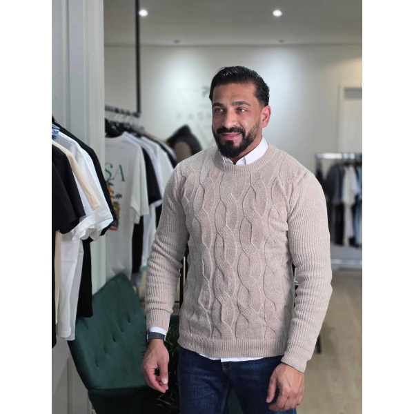 Gebreide KabelTrui Beige 081