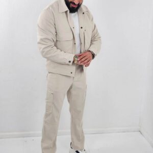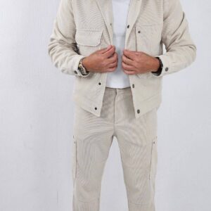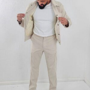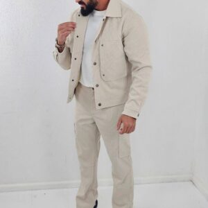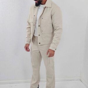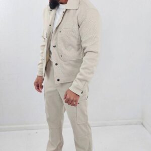 Geribbelde heren Set Jacket en Oversized Broek Beige 93-5