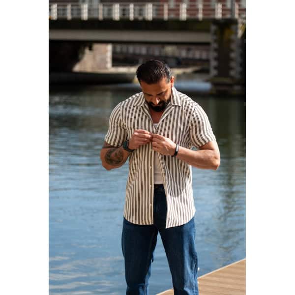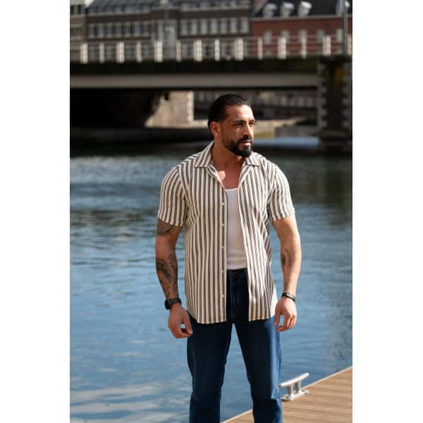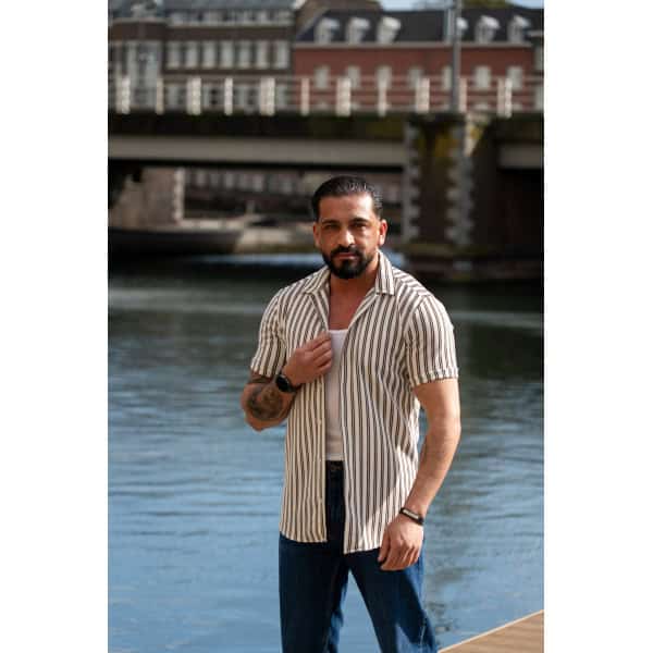 Gestreept Overhemd Korte Mouwen Bruin Wit