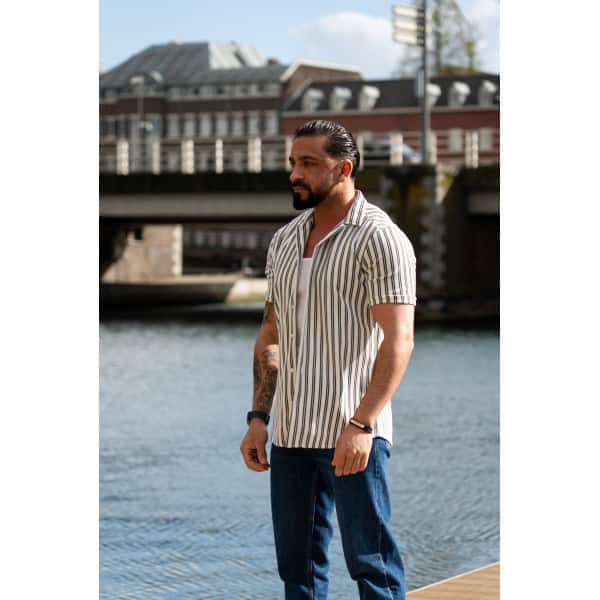Gestreept Overhemd Korte Mouwen Wit Zwart