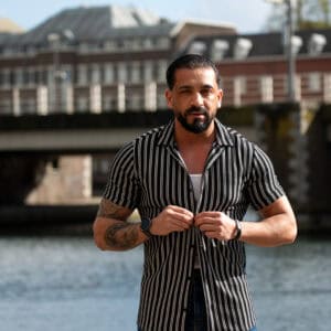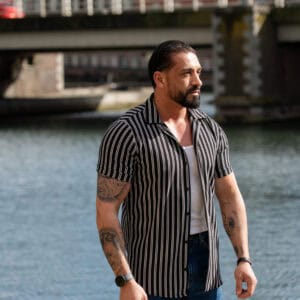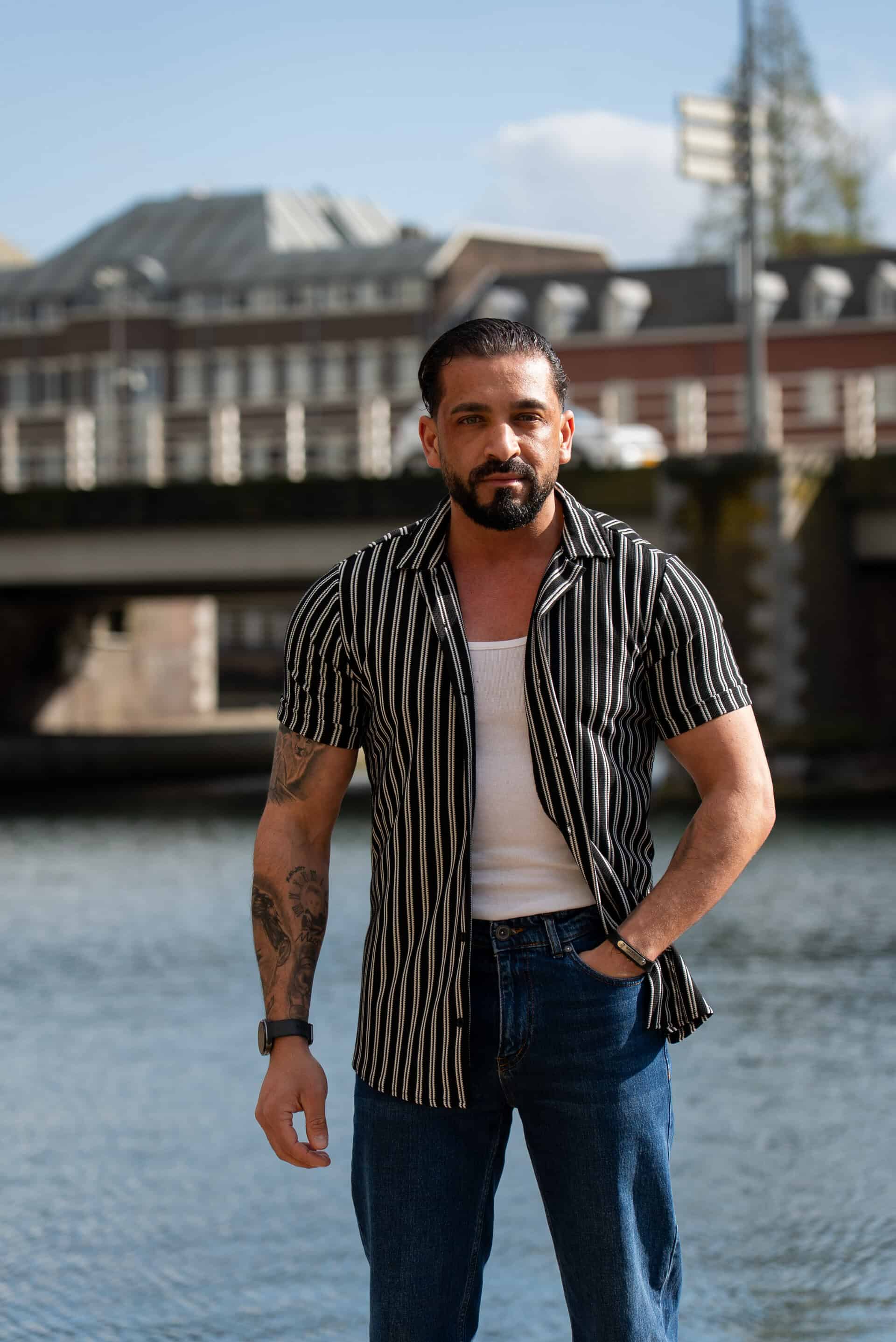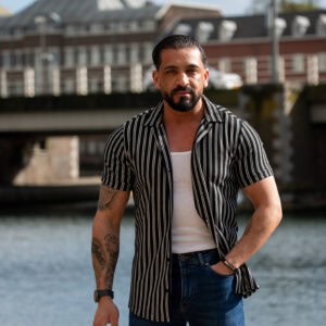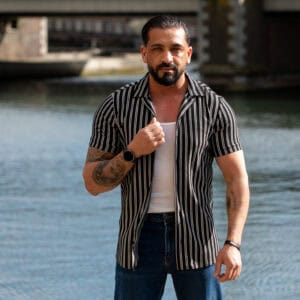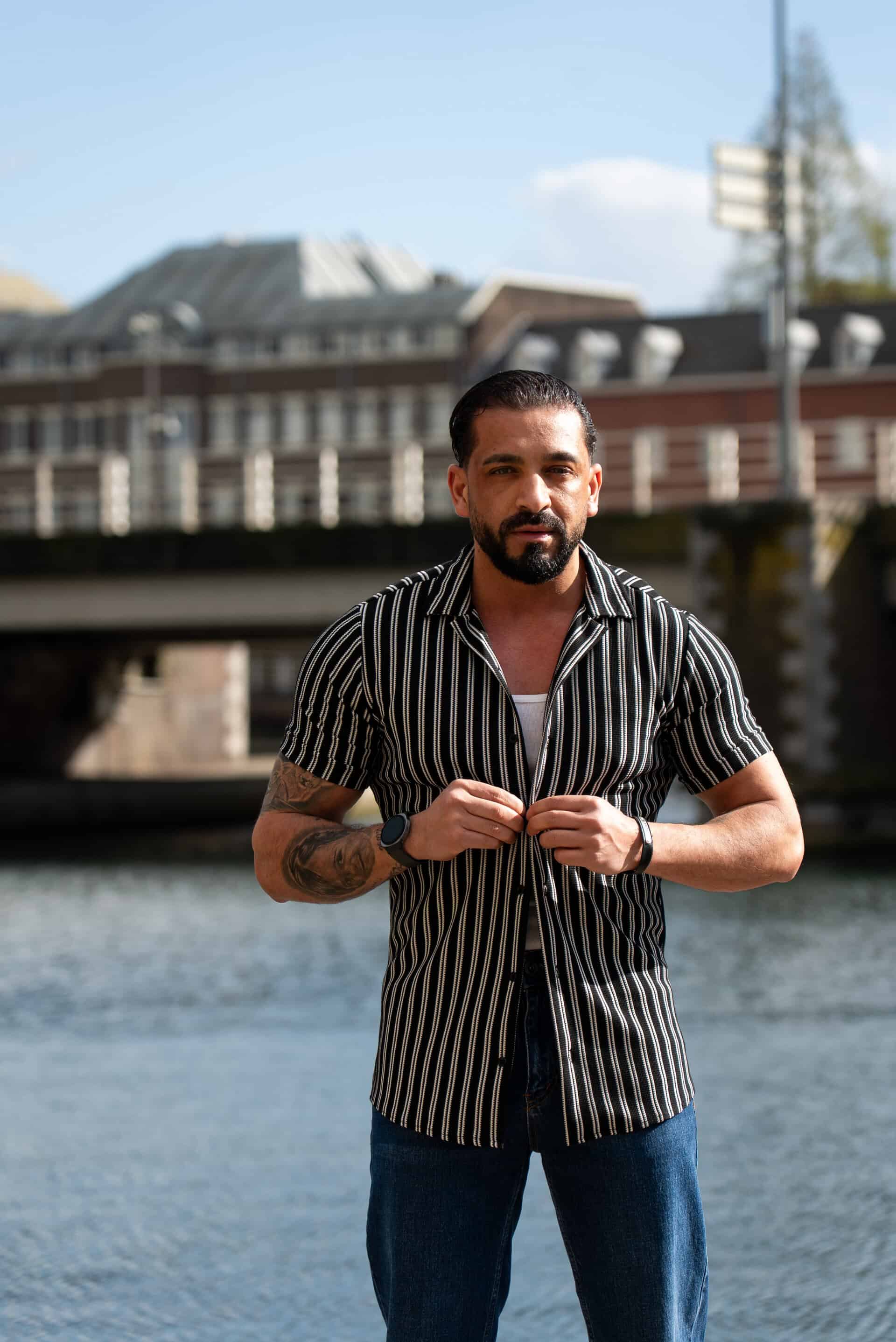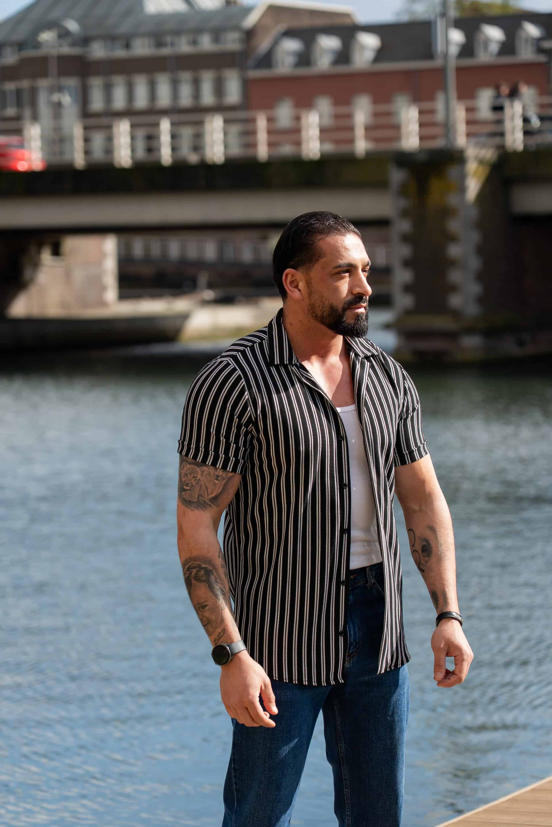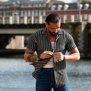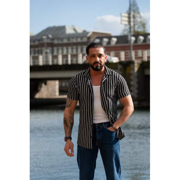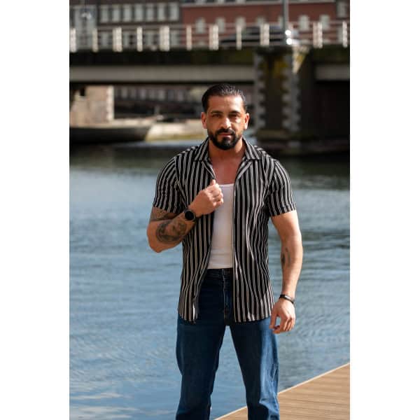 Ga stijlvol de zomer in met dit moderne gestreepte heren overhemd met korte mouwen. Het overhemd heeft een slanke (slim fit) pasvorm die het lichaam mooi volgt en zorgt voor een verzorgde, eigentijdse uitstraling. De verticale strepen geven een verfijnde en tegelijkertijd casual look, perfect voor zowel dagelijkse outfits als zomerse gelegenheden.
