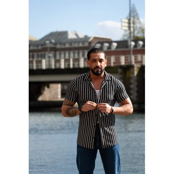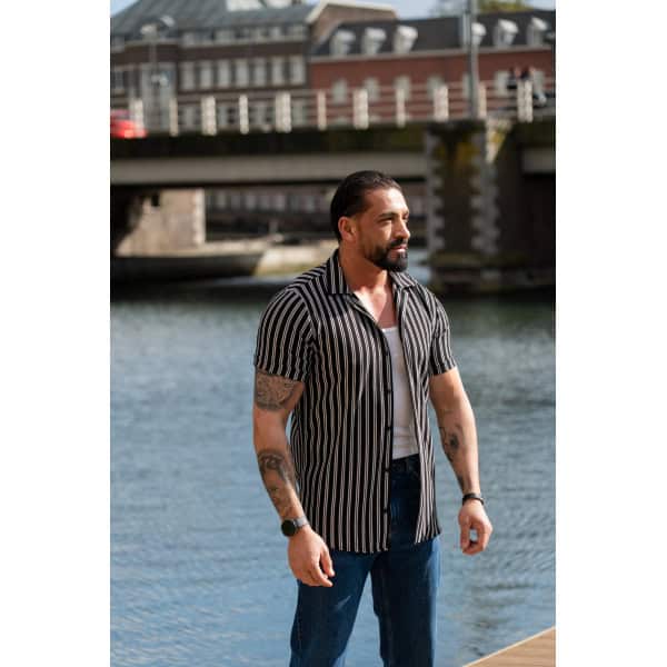 Gestreept Overhemd Korte Mouwen Zwart Wit