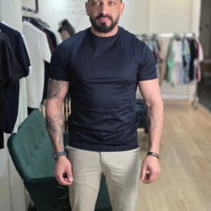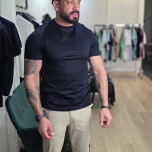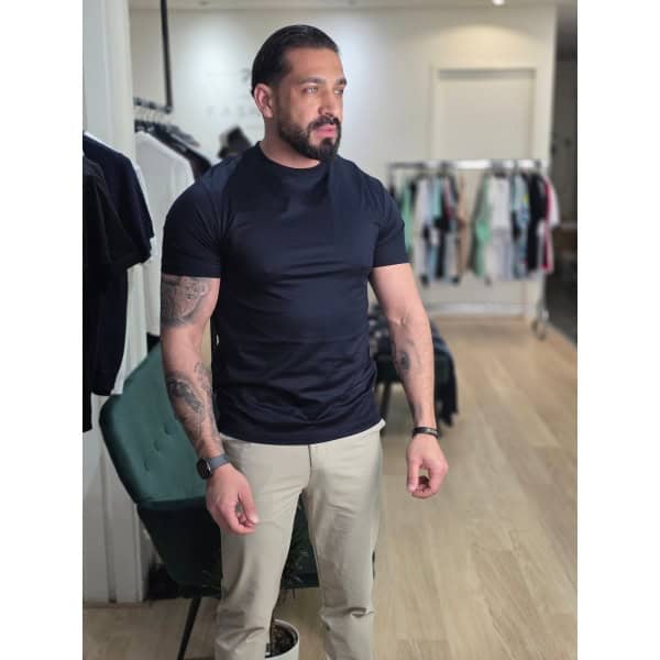 Glans T-shirt, onze best seller en jouw nieuwe favoriete item, dat je keer op keer zult dragen. Gemaakt van een hoogwaardige mix van 95% polyester en 5% elastan, biedt dit t-shirt ultiem comfort én stijl. De 4-way stretch stof zorgt voor een perfecte pasvorm die met je meebeweegt, terwijl de straight fit een casual, ontspannen look biedt. De subtiele glans van de stof maakt dit shirt niet alleen een must-have, maar ook de perfecte match voor onze ‘Chino Broek‘ waarmee je een complete, stijlvolle outfit creëert. Voeg dit tijdloze t-shirt toe aan je garderobe en ontdek waarom het zo’n hit is!