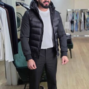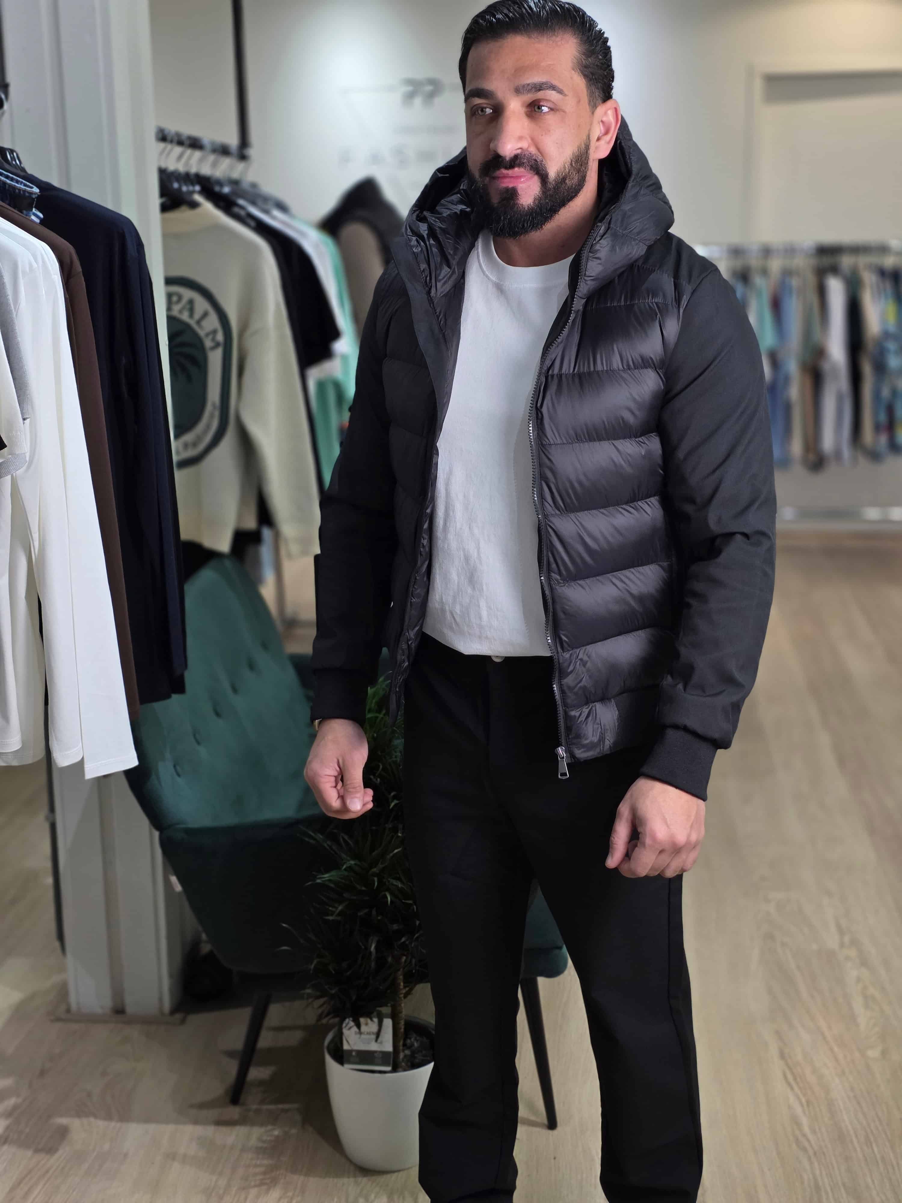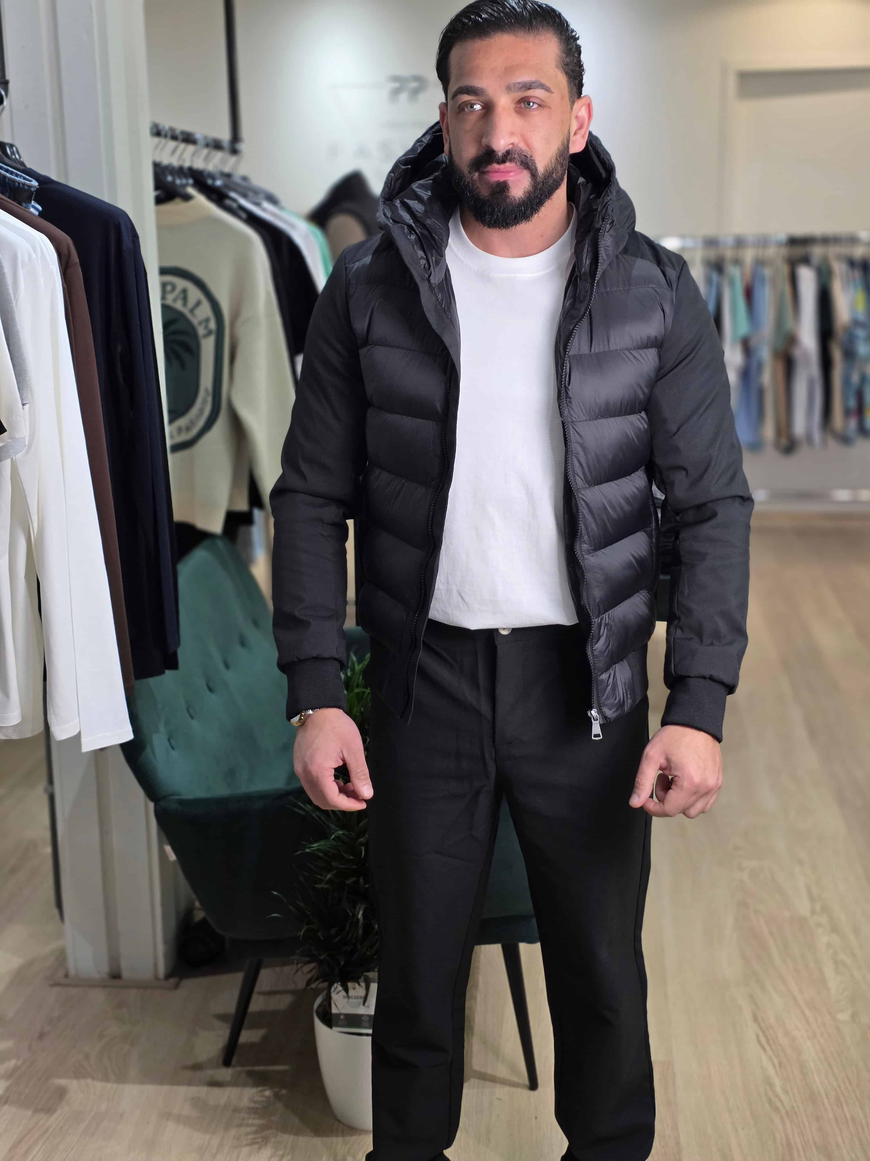 Hybride Gewatteerde Jas met Capuchon Zwart 32