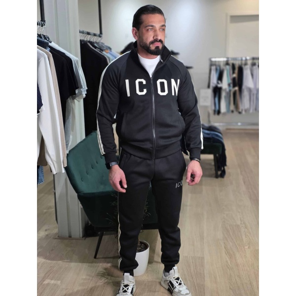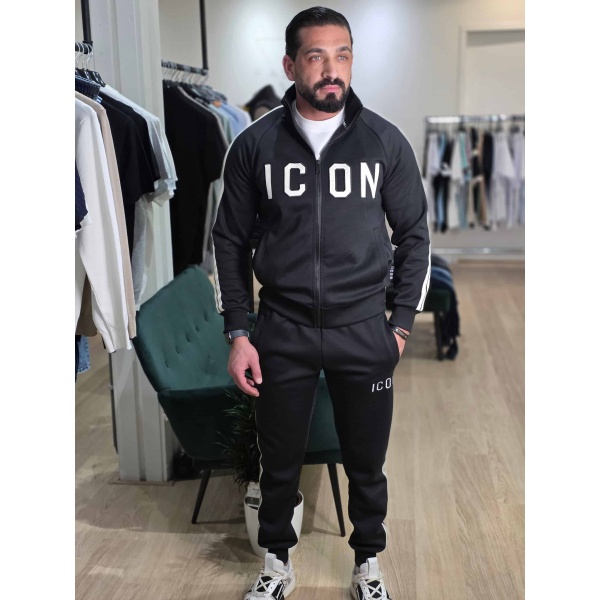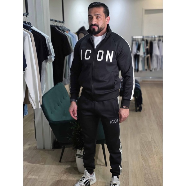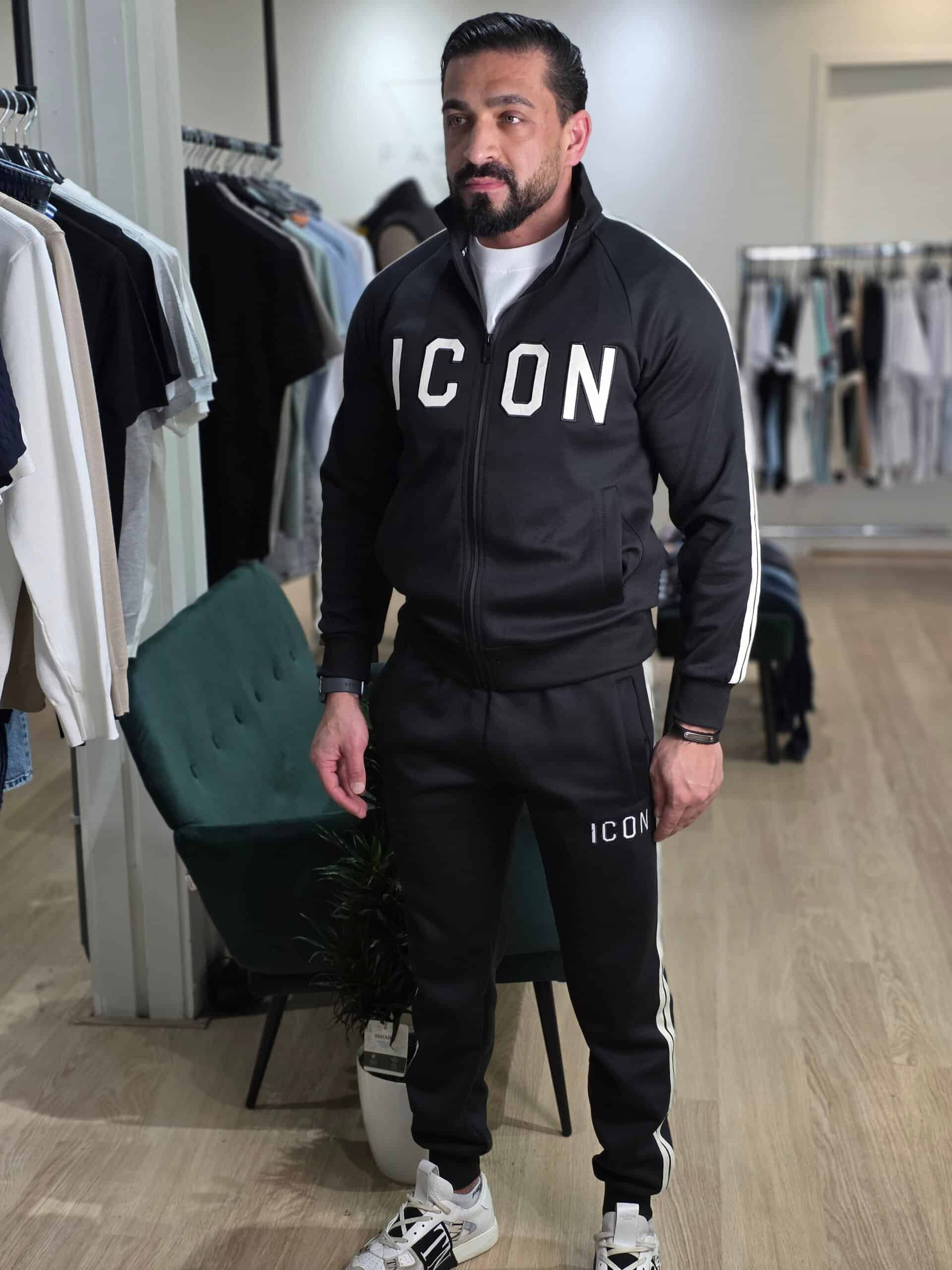 De zwarte ICON trainingsset is een echte must-have voor een moderne streetwear look. De opvallende witte logoprint contrasteert perfect met de diepe zwarte kleur. Dankzij de aangesloten pasvorm oogt de set sportief en stijlvol tegelijk.
