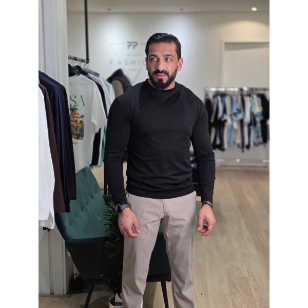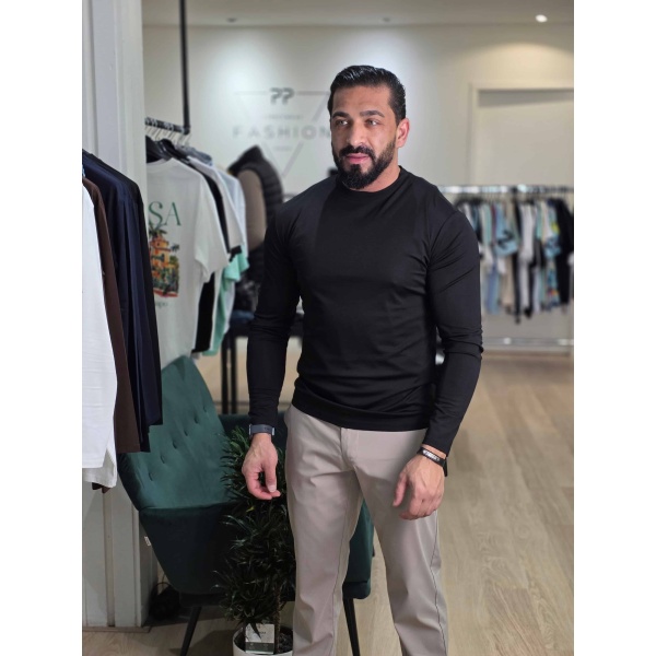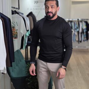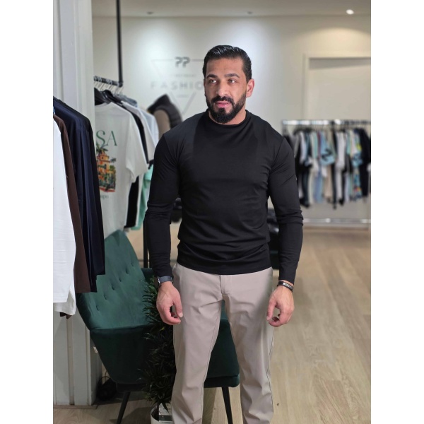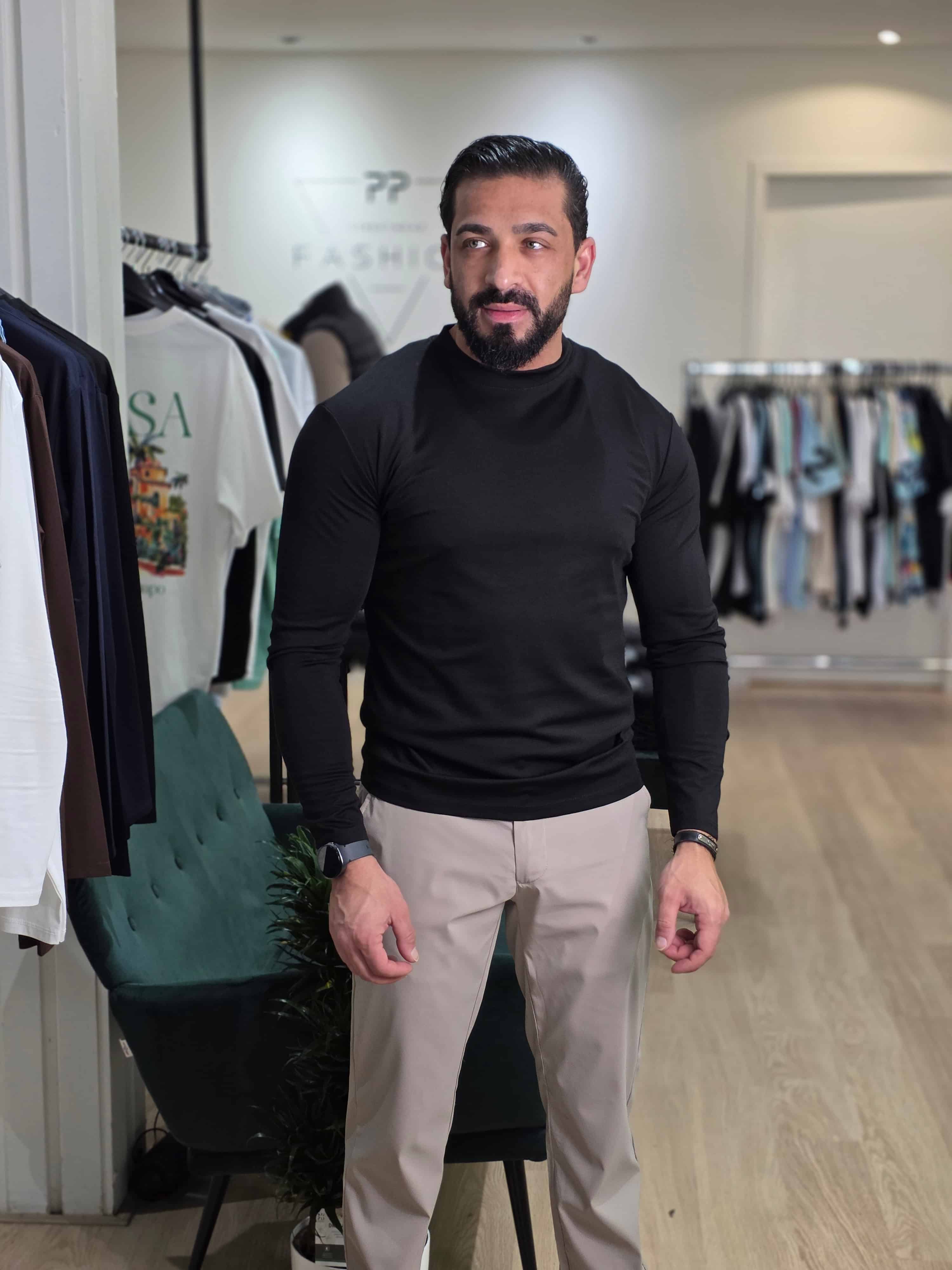 Longsleeve Stretch Glans Shirt Zwart 7049