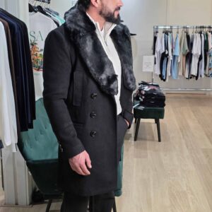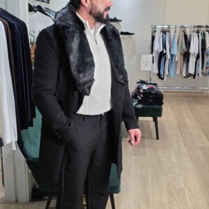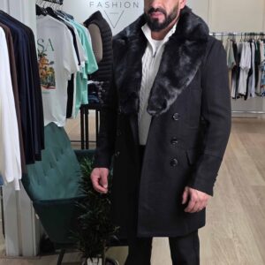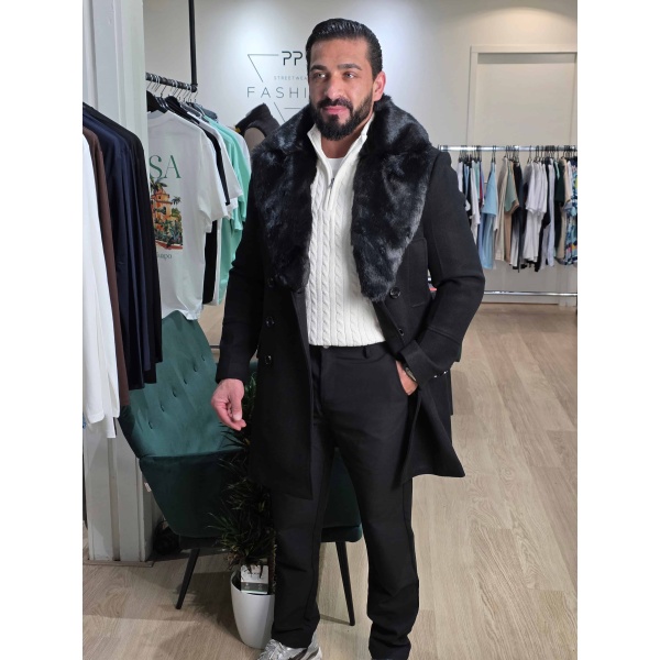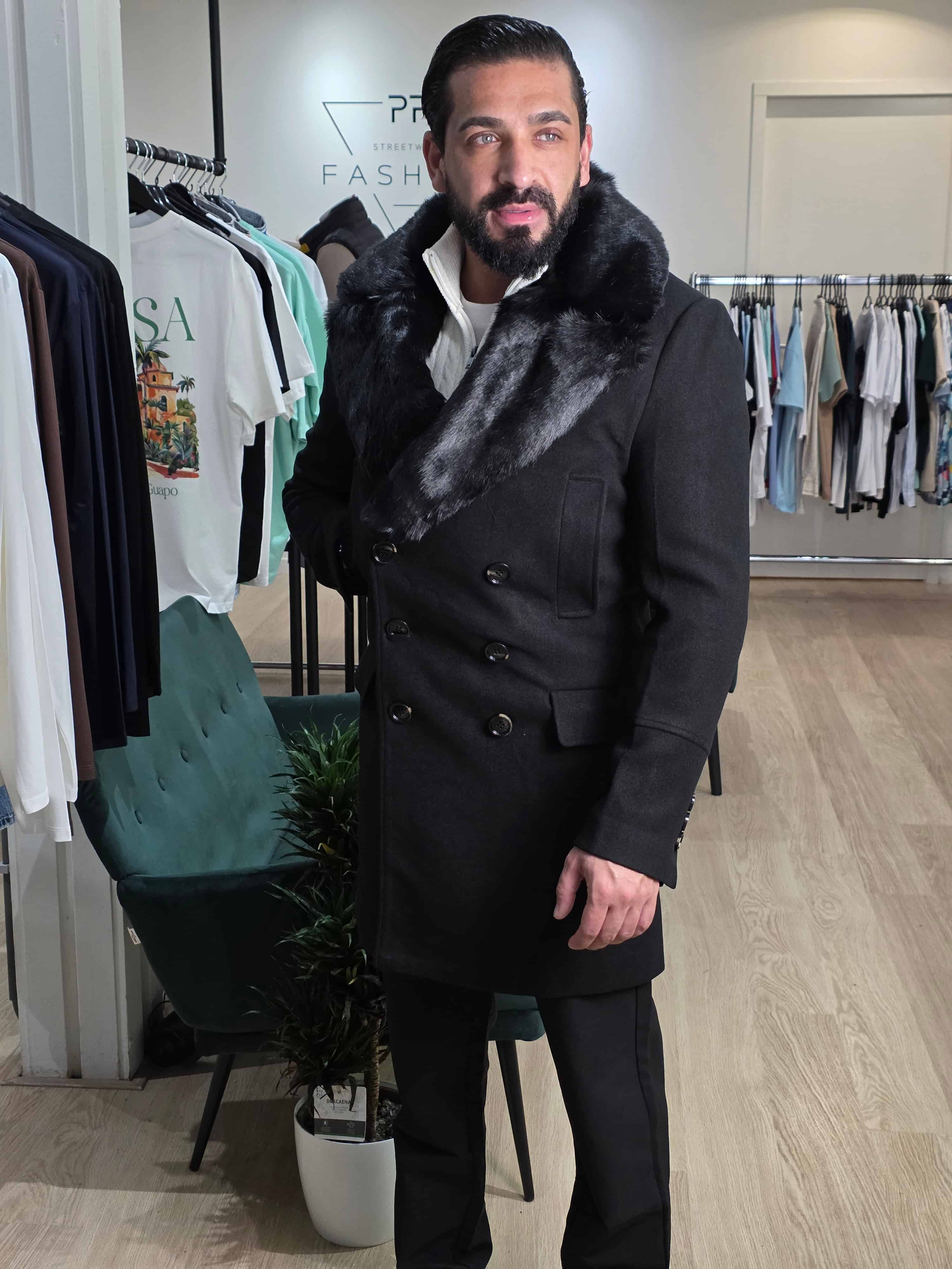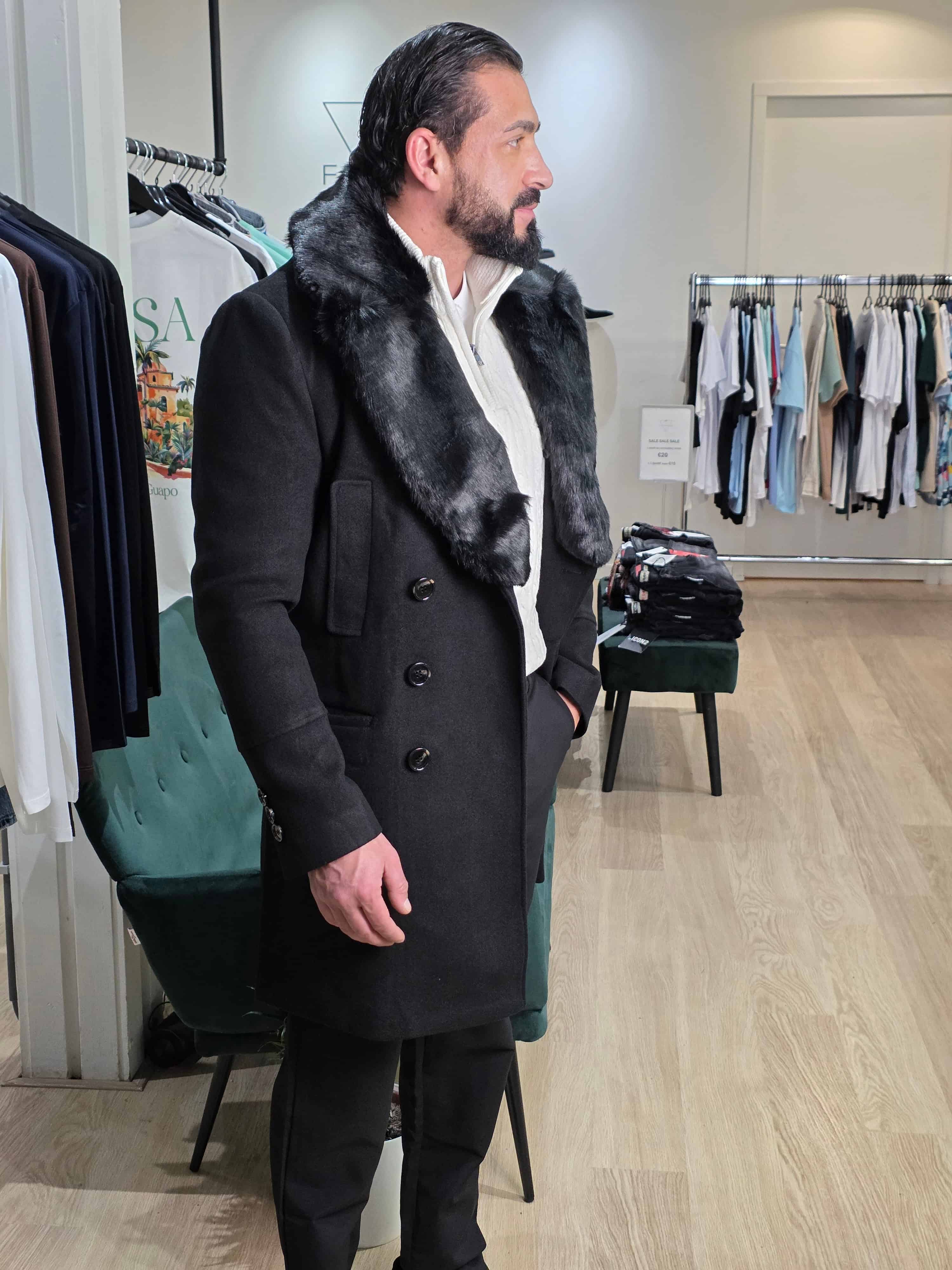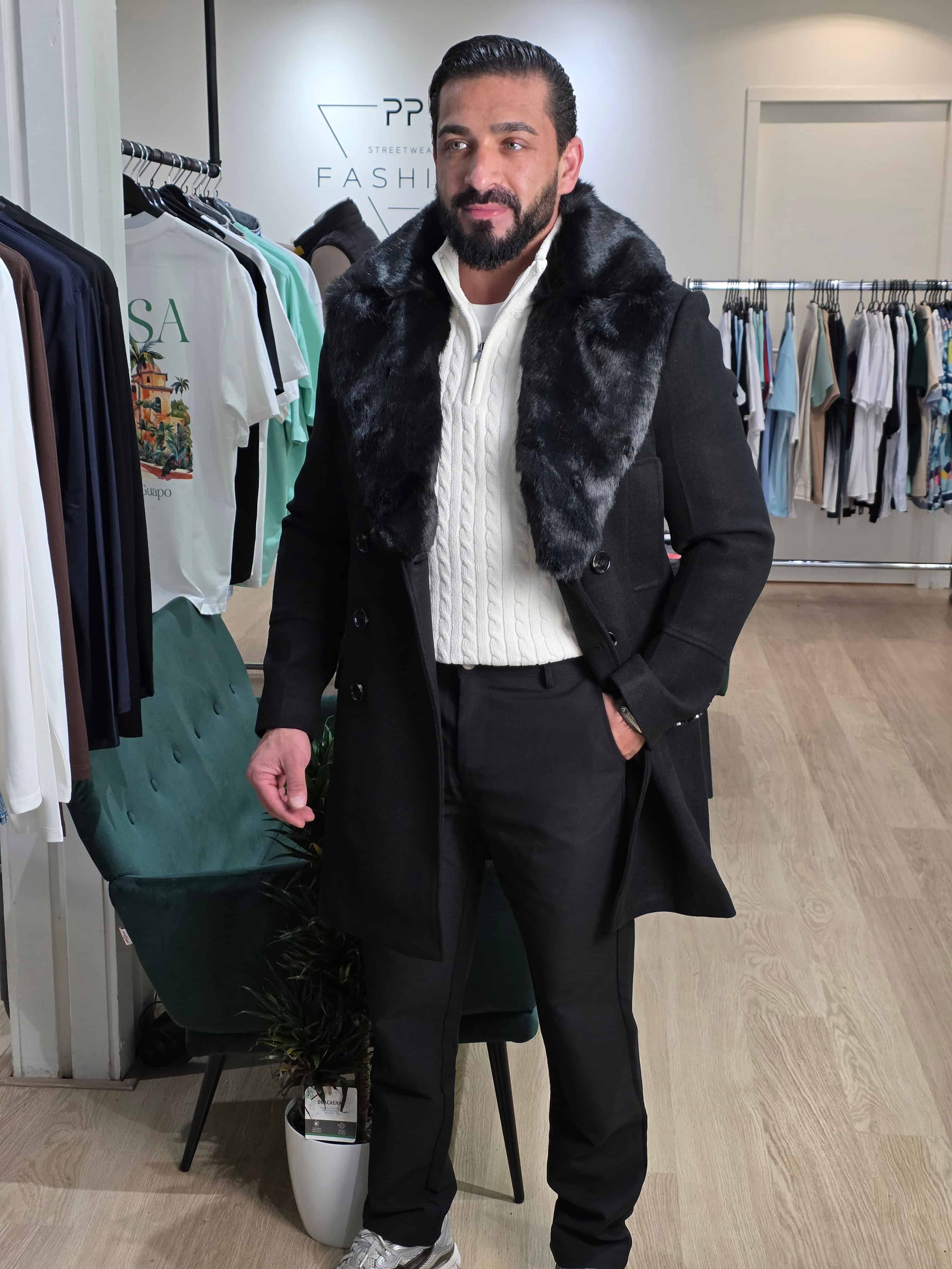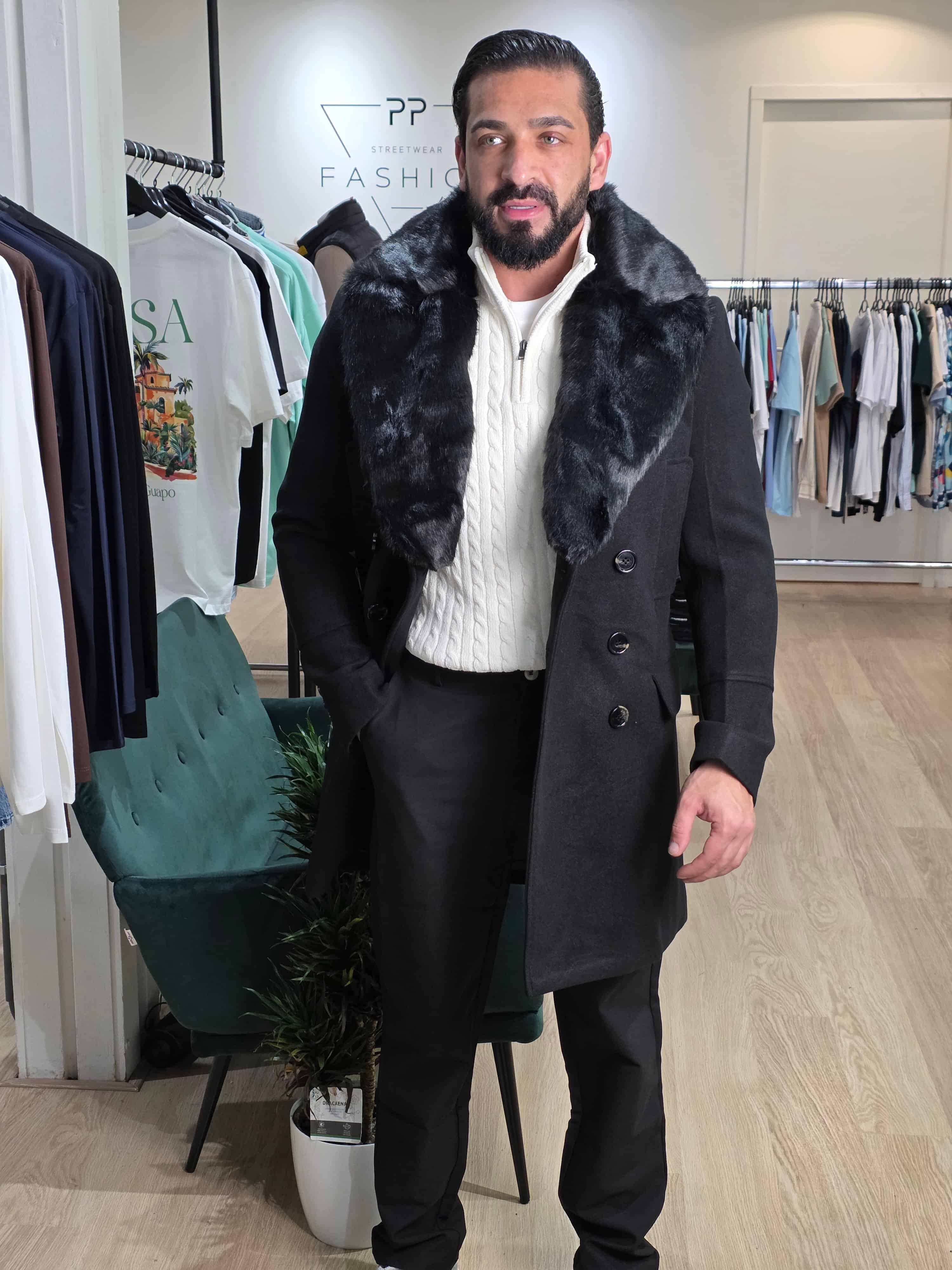 Mantel Winterjas met Afneembare Bontkraag Zwart 2085