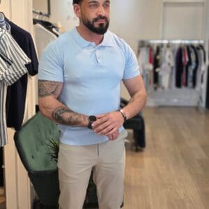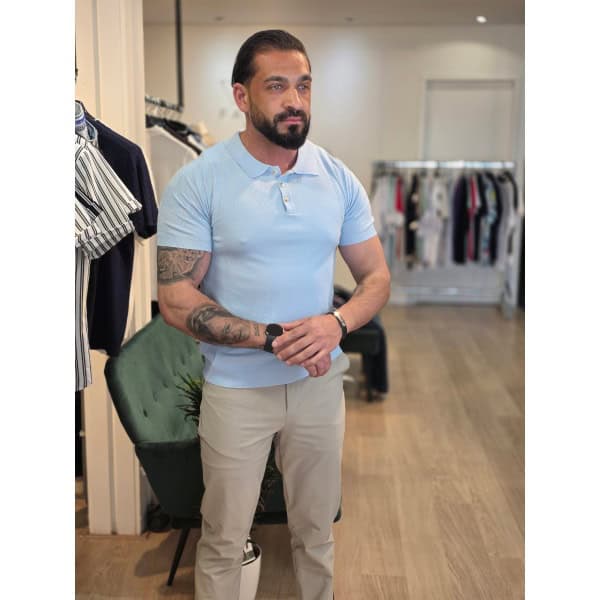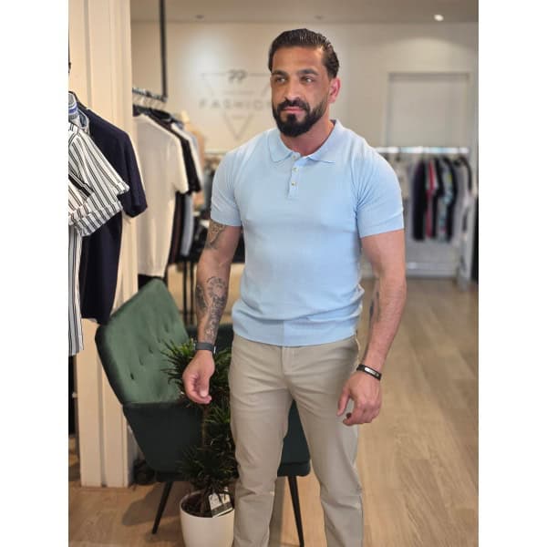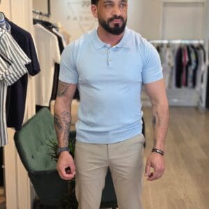 Deze polo is een eenvoudige en klassieke herenpolo met korte mouwen. Het heeft een nette, aansluitende pasvorm . De kraag is typisch voor een polo en voorzien van een knoopsluiting met 3 knopen. Het materiaal lijkt lichtgewicht en comfortabel, geschikt voor een casual, maar toch verzorgde uitstraling.