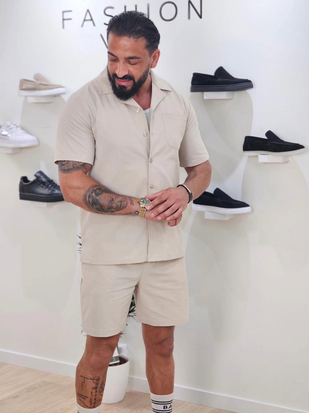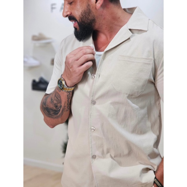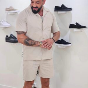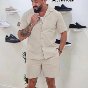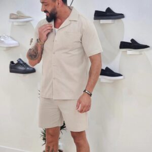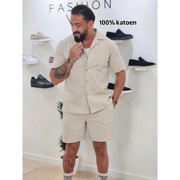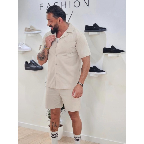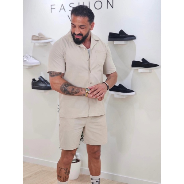 Set van effen shirt en korte broek Beige 1099