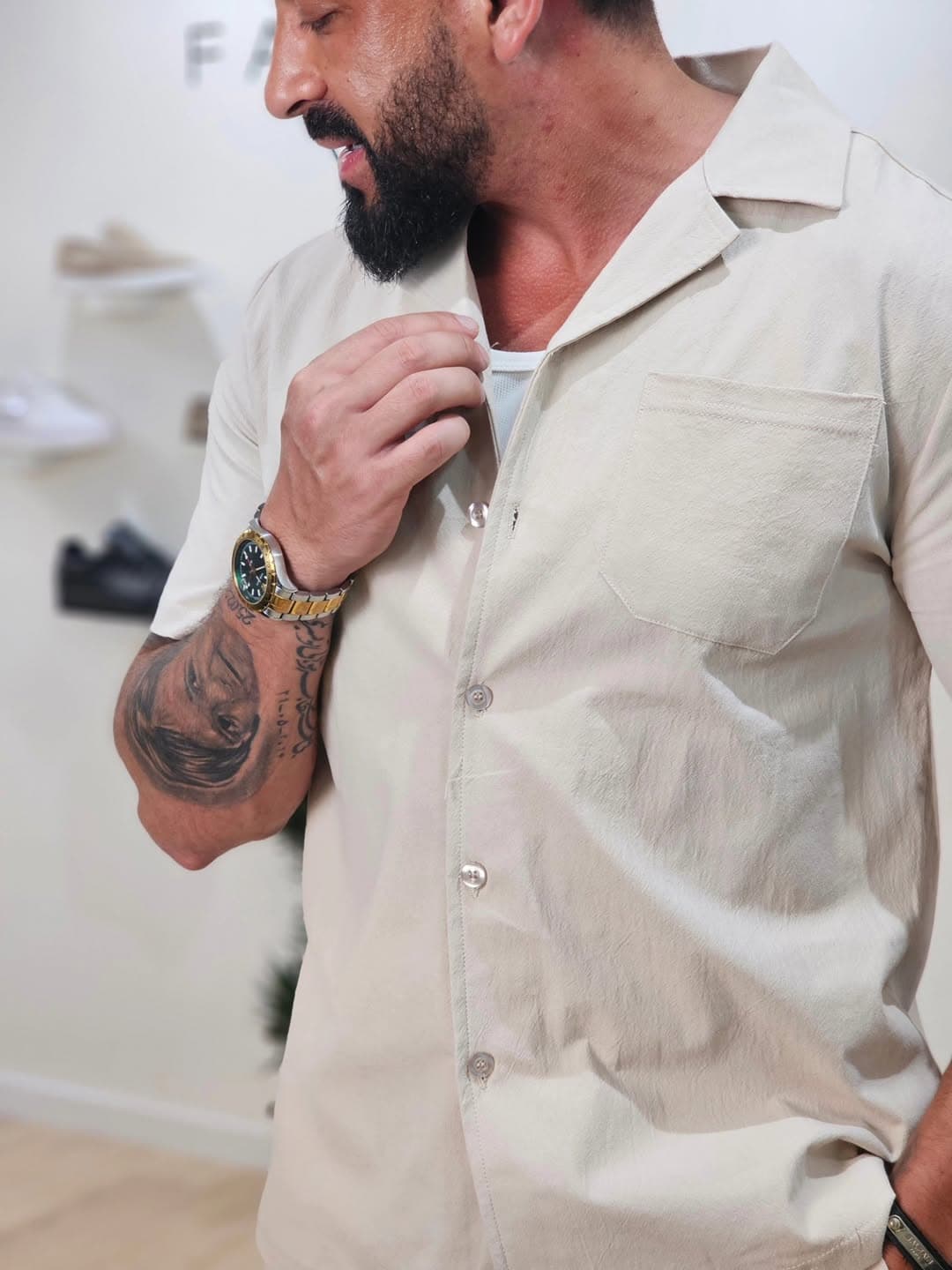- Overhemd met diepe reverskraag
